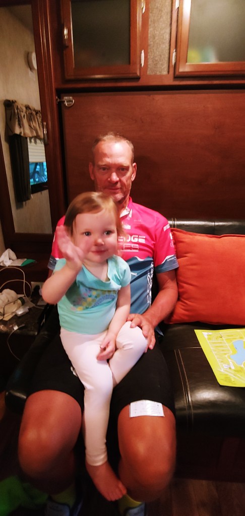SUZI – On Maureen’s first day on the support crew, we drove the guys to their start, then went back to camp to close up and drive. We took a little time to see and photograph some bridges on the Erie Canal. Than managed to find a lovely, bargain salon in Rochester for essential pedicures. More driving to our picturesque RV park with a site overlooking Lake Ontario.
