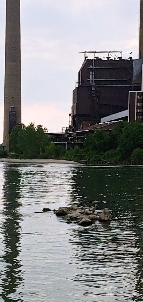 I stopped for a walk in one lakeside park at Avon. A power plant operates next to the park. I’ve passed several power plants like this one along the Lake Erie shoreline. This NRG power plant is coal-powered. News stories suggest that it is in transition to cleaner coal burning or natural gas, with shifts from time to time in the plans and timing of continued operation. It’s evident that power generation is a major industry for Lake Erie.