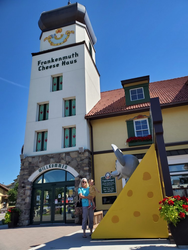 Meanwhile, the city of Frankenmuth reminded us of Leavenworth, Washington, with a Bavarian theme and lots of shopping. A few days before, I googled “shopping” along our route and Google presumed that I was looking for a cheese shop. So that got us thinking about cheese and we ended up cheese shopping in Frankenmuth. Now we have a cheese drawer to go with our chocolate drawer. Just trying to keep Kevin from blowing away since he’s now lost 15 pounds!