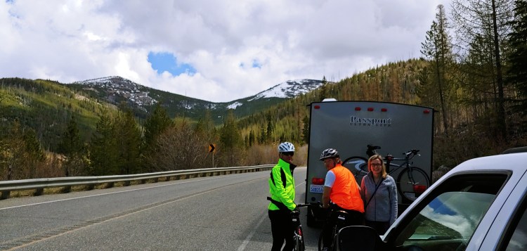 How can we thank Riley and Lauren (and Peach) for the boost they gave us to start this trip? Two weeks with their assistance and companionship passed too quickly. Riley’s commitment to ride with Kevin across Washington, Idaho and half of Montana transformed the mountains from daunting to communal. Riley shared 741 miles of the trek with Kevin.