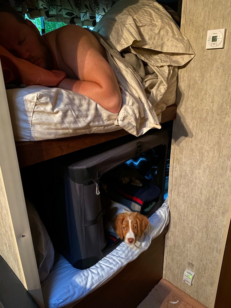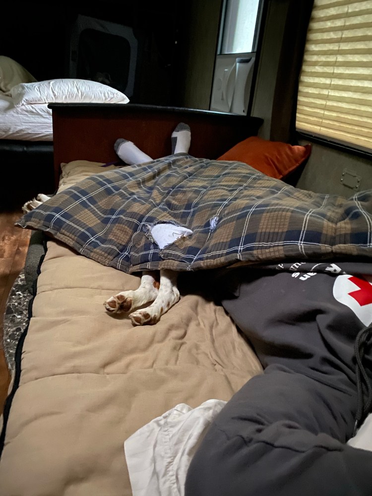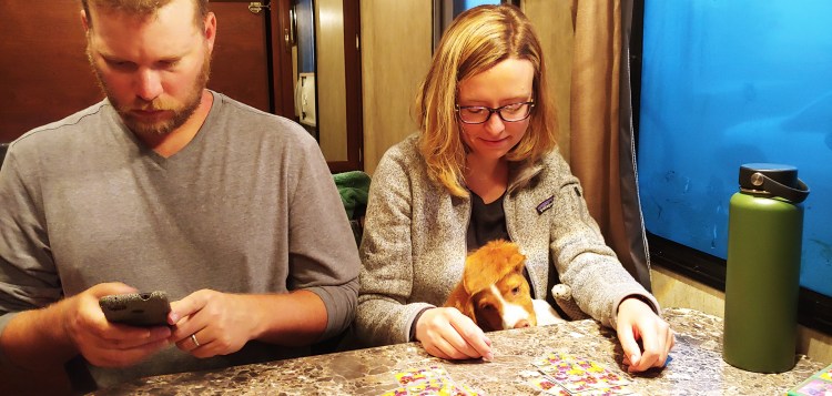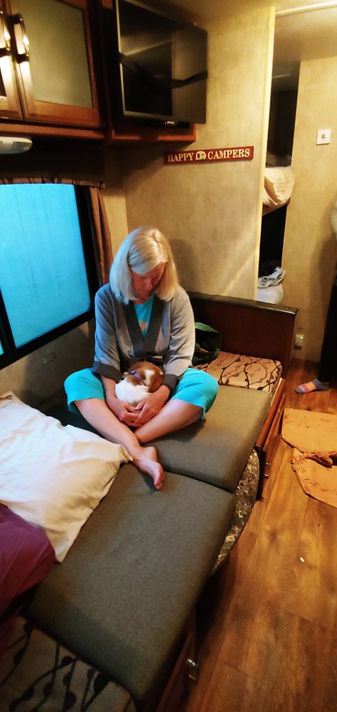 Lauren dived into the road trip with her usual alacrity. She quickly embraced the daily “walk around” before pulling out with the trailer, and caught some misses before we drove away with ports uncapped or locking pins on the ground. When we fell short finding the next night’s lodging, she took on the task and proceeded to find at least seven nights of hookups and showers, some with bonuses like river walks and gorgeous views.